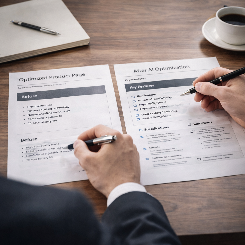 - We rewrite your product page content for AI clarity (without fluff or filler).